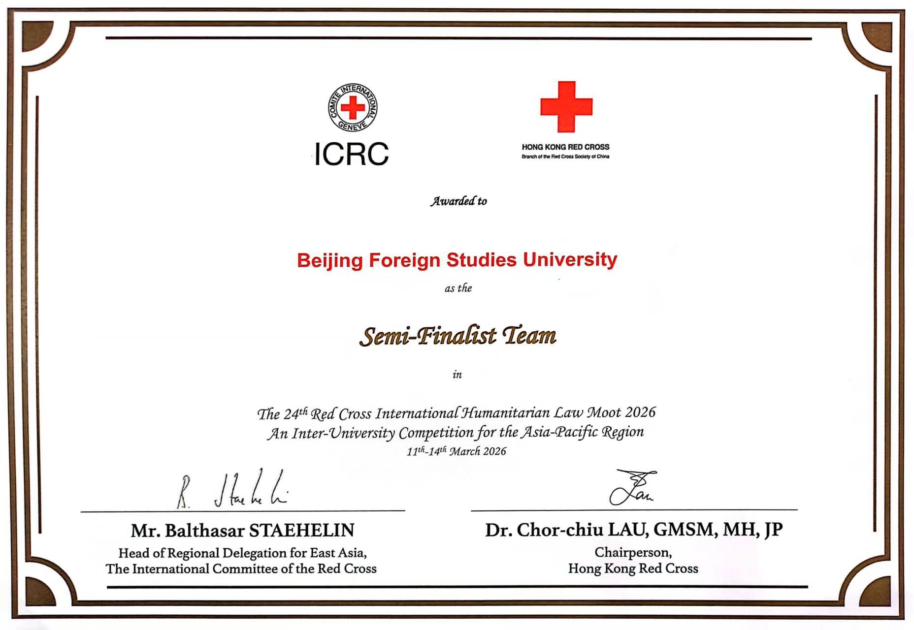 2026年3月11日至14日,第二十四届亚太地区红十字国际人道法模拟法庭竞赛在中华人民共和国香港特别行政区举办。由日本av