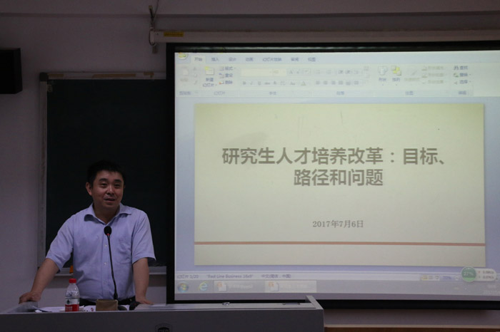 研究生人才培养改革:目标、路径和问题”和“研究中心的科研职能与研究生培养”的发言。全院教师围绕“如何提高研究生生源质量”、“如何提高研究生培养质量”、“如何引导学生参与学术活动和科研工作”等问题展开了讨论。