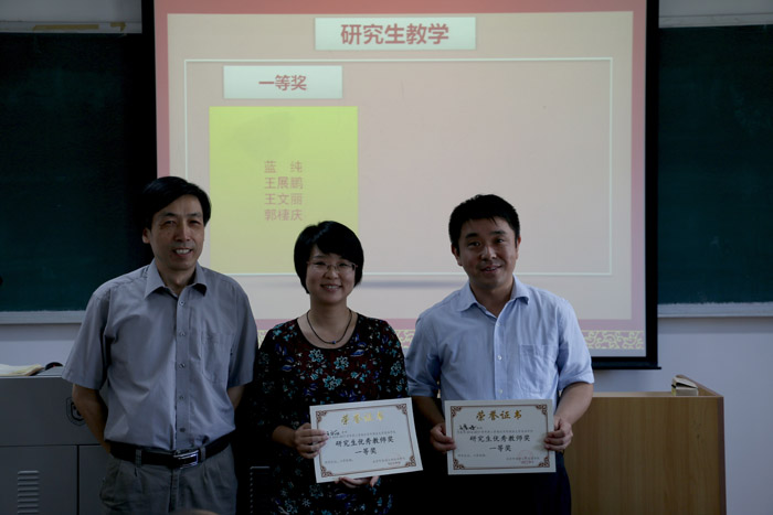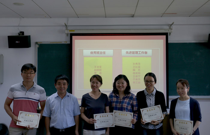 对2016—2017学年第二学期的优秀教师及先进管理工作者进行了表彰。奖项共分“本科生教学优秀奖”(一等奖、二等奖)、“研究生教学优秀奖”(一等奖、二等奖)、“预科班教学优秀奖”、“同等学力研修班教学优秀奖”、“优秀班主任奖”及“先进管理工作奖”等六项。