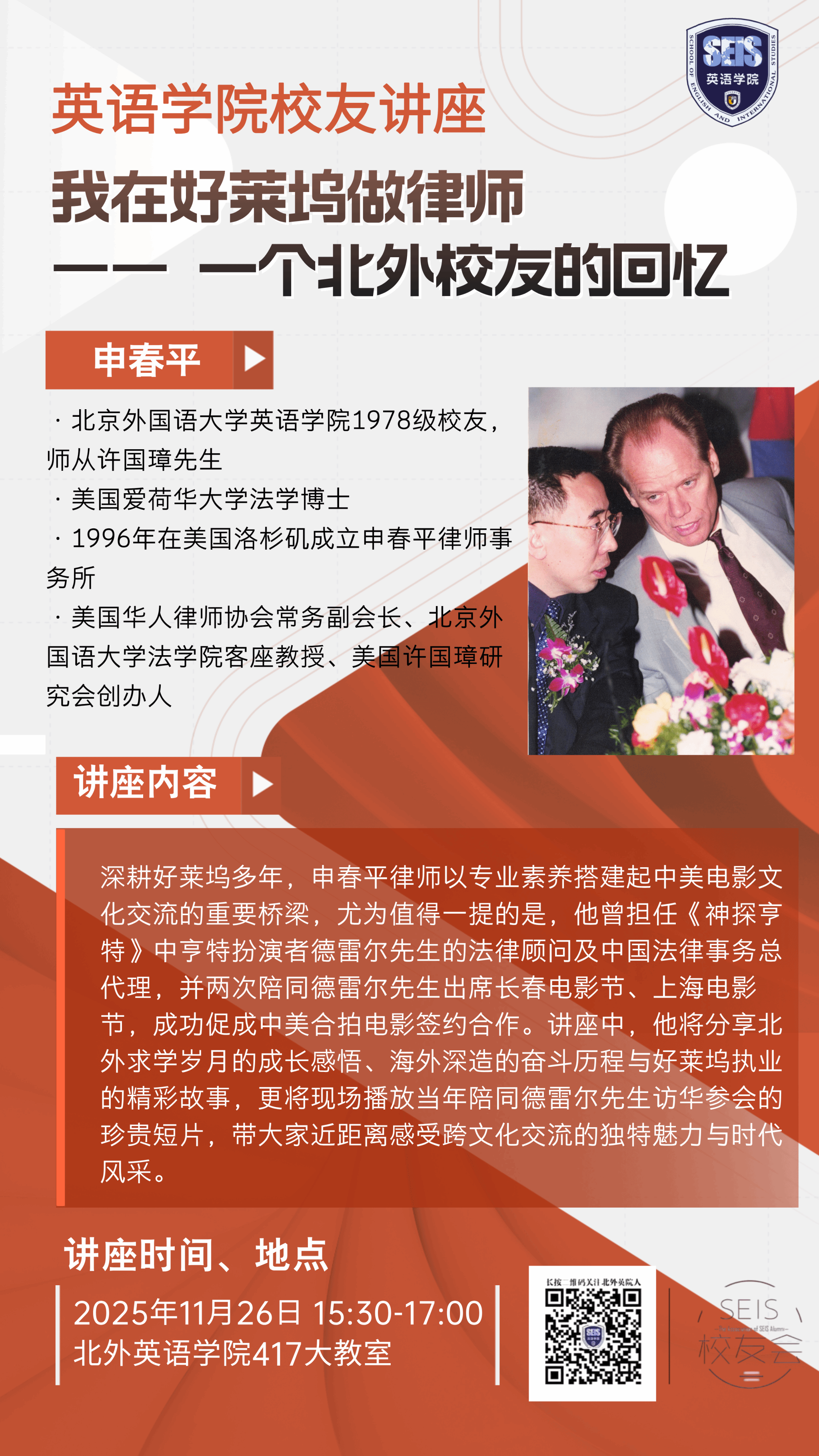校友讲座回顾:我在好莱坞做律师 —— 一个北外校友的回忆