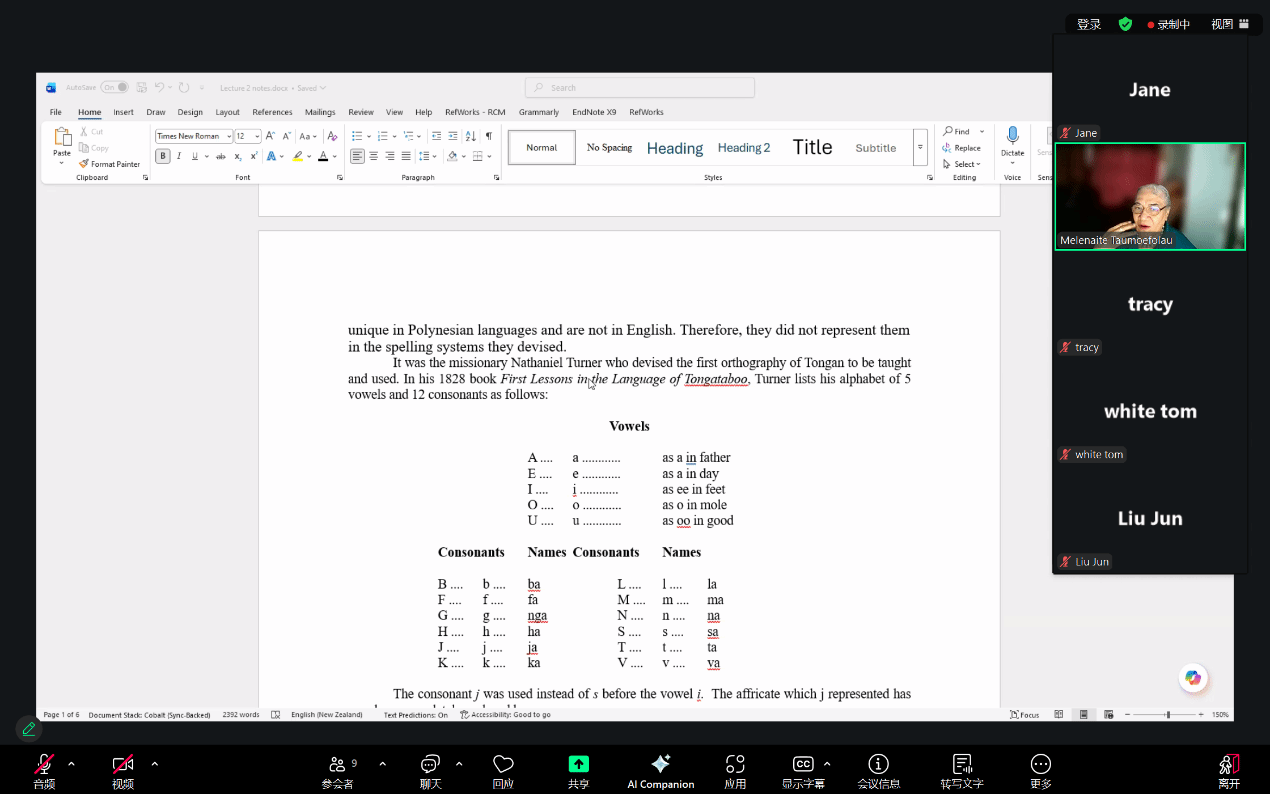 南太平洋语言与文化中心和世界语言博物馆邀请,汤加语外国专家梅莱奈伊特·塔乌莫艾富拉乌(Melenaite Taumoefolau)博士在线上做了题为“波利尼西亚语言语音学与正字法相关问题”(Issues in Polynesian Phonology and Orthography)的讲座。讲座由日本av