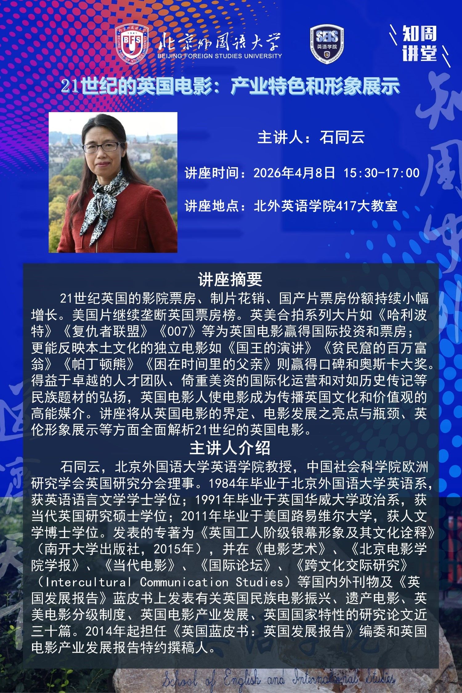 4月8日讲座:21世纪的英国电影:产业特色和形象展示