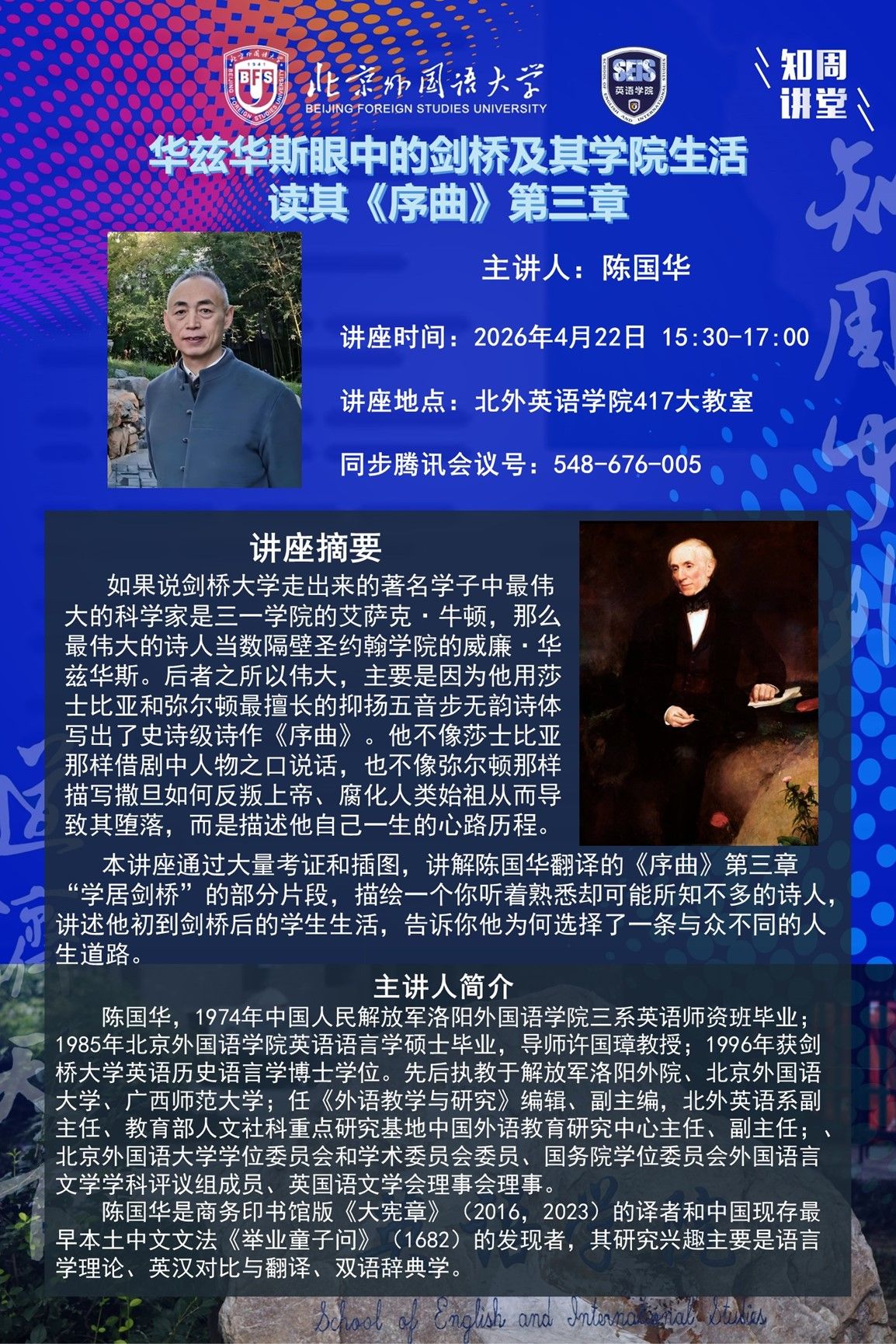 4月22日讲座:华兹华斯眼中的剑桥及其日本av 生活——读其《序曲》第三章