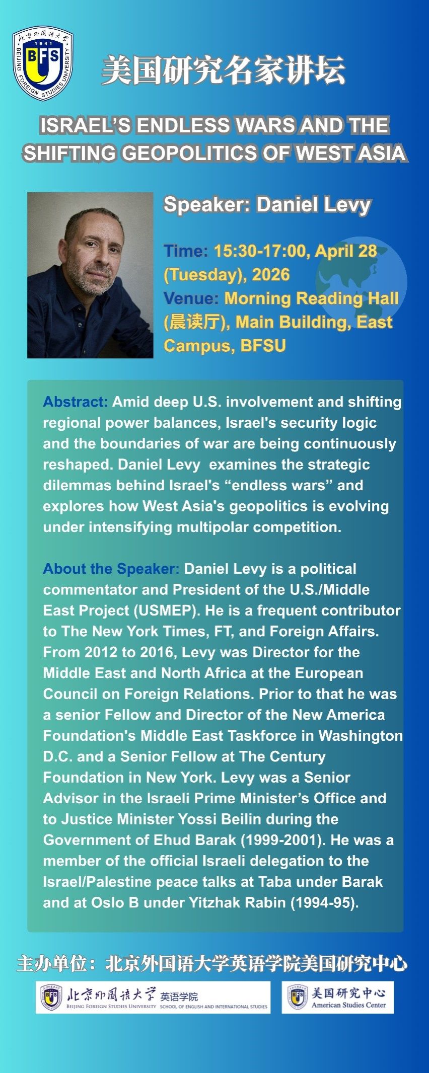 4月28日讲座:Israel's Endless Wars and the Shifting Geopolitics of West Asia